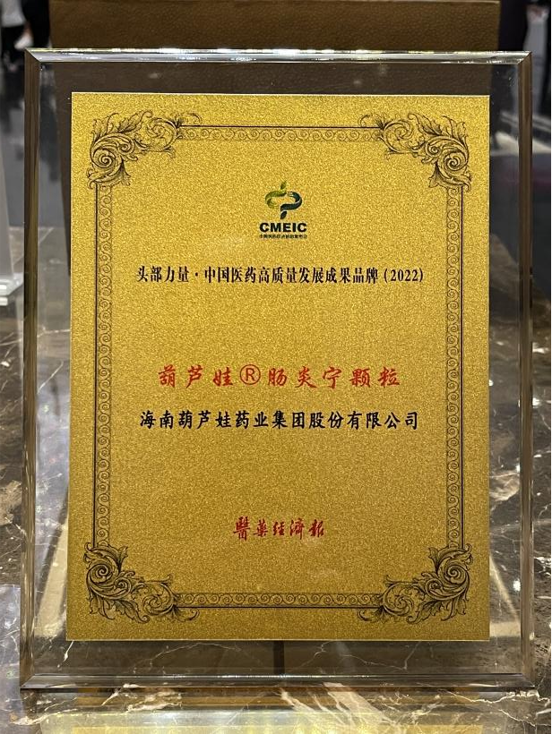 在本次发布会上,公司重点产品龙八国际牌肠炎宁颗粒同时荣膺“头部力量·中国医药高质量发展成果品牌(2022)”。龙八国际牌肠炎宁颗粒(2g),传承经典名方,临床广泛用于成人及儿童急慢性胃肠炎、腹泻等疾病的治疗,由于其杰出的临床价值,被纳入国家中医药管理局相关专家项目组制定的《中成药治疗小儿腹泻病临床应用指南》。
