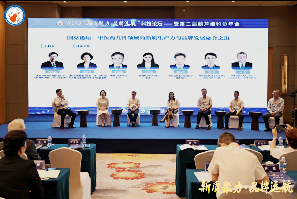 龙八国际药业集团党委书记、董事长刘景萍,海南大学药学院院长罗海彬、海南医学院药学院院长王艳丽、海南省精准医学研究会高级顾问李治平、海南省妇女儿童医学中心临床药学科主任邹俊,四川省中医药信息学会党委书记、常务副会长刘江等,在主题为“中医药儿科领域的新质生产力与品牌发展融合之道”的圆桌论坛中积极献策。海南省医药行业协会会长、齐鲁制药(海南)有限公司董事长刘文民主持论坛。